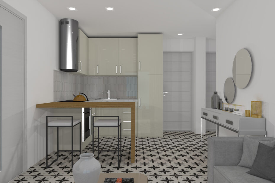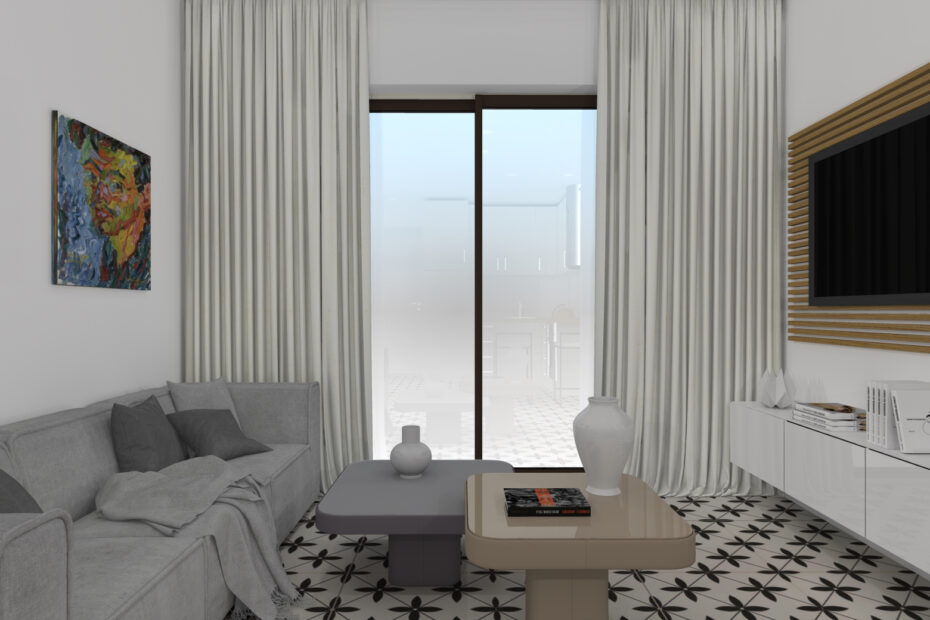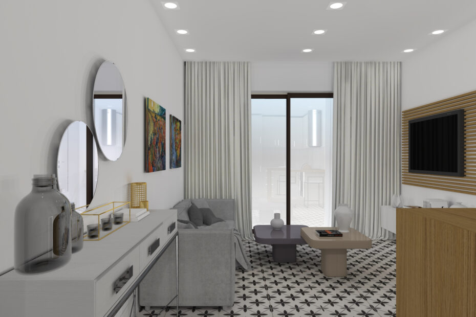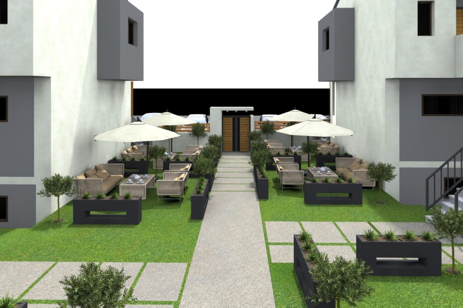 H κατοικία αποτελείται από ιδιωτικό κήπο 25τ.μ, δυο δωμάτια, σαλόνι, κουζίνα, μπάνιο και άνετο μπαλκόνι.
